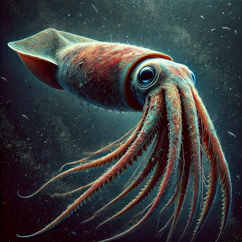 대왕오징어는 세계에서 가장 큰 무척추동물 중 하나로, 길이가 최대 13미터 이상 자라는 경우도 있습니다. 그 거대한 크기와 무게는 대왕오징어를 바다에서 가장 두려운 포식자로 만들었으며, 이들은 깊은 바다에서 물고기나 작은 해양 생물을 사냥하는 방식으로 살아갑니다.