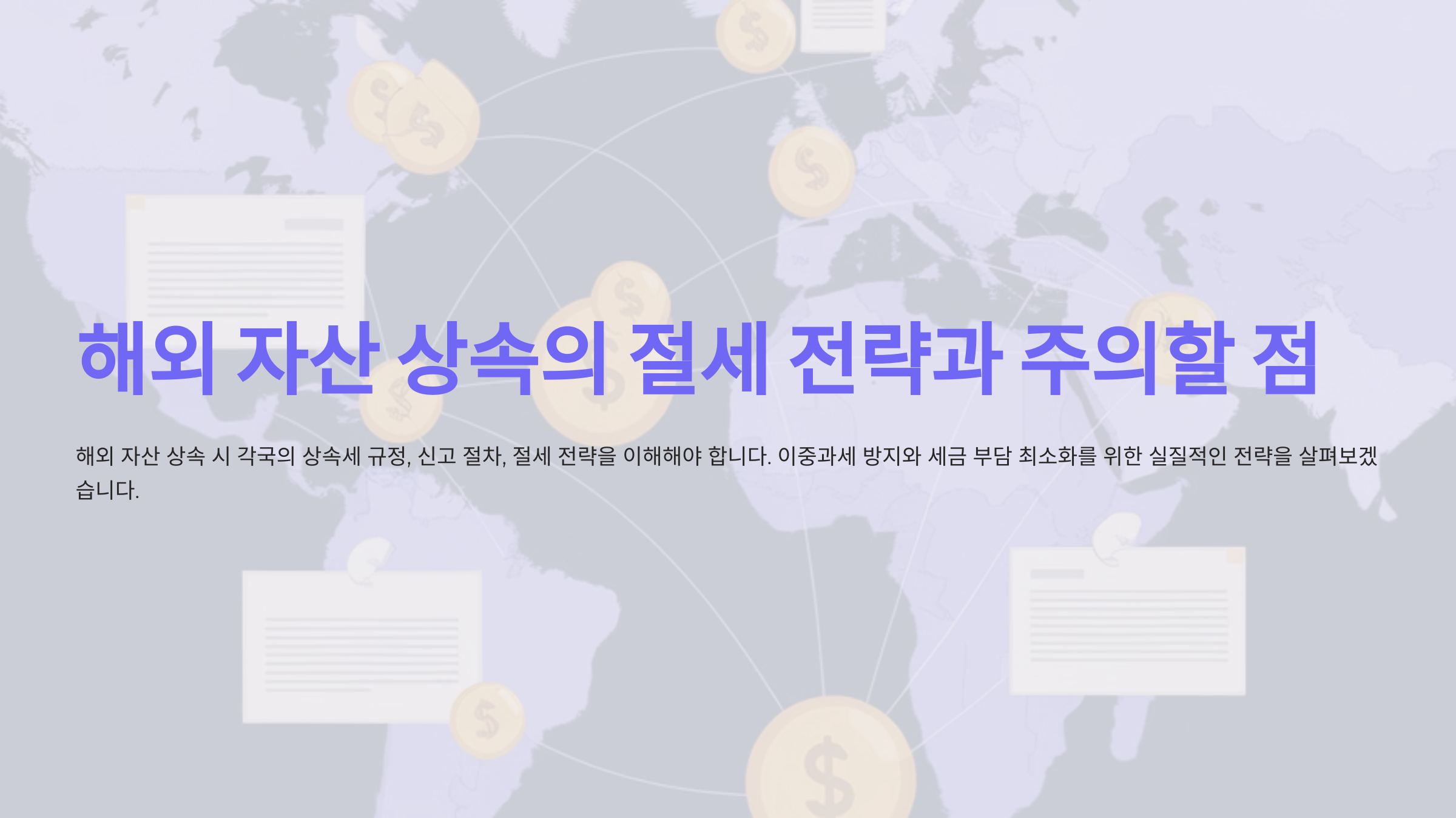 해외 자산을 상속받을 때는 각국의 상속세 규정, 신고 절차, 그리고 절세 전략을 철저히 이해해야 합니다. 이를 통해 이중과세 문제를 방지하고 세금 부담을 최소화할 수 있습니다. 이번 포스팅에서는 실질적인 절세 전략, 국가별 주요 규정, 그리고 주의해야 할 사항을 상세히 다룹니다.