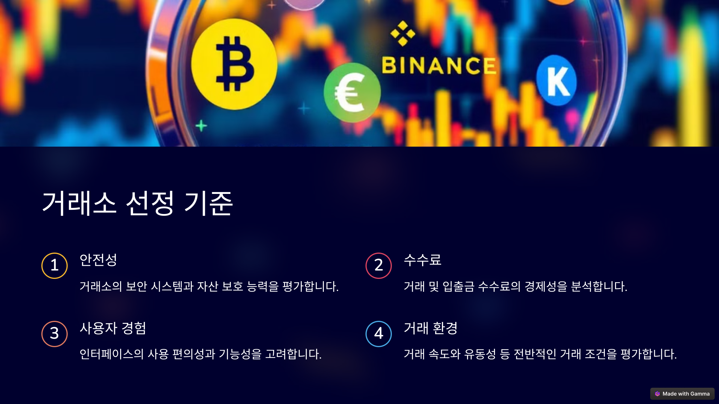 - 수수료 및 보안성: 수수료가 저렴한 거래소를 선호하는 것도 중요하지만 자산 보호를 위한 보안성 역시 중요합니다.